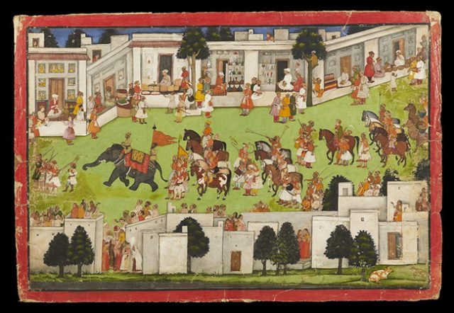 Sultan Muhammad Adil Shah and Ikhlas Khan riding an Elephant